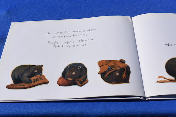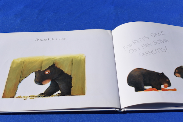 This is one of those books where the pictures really make the story.  It’s also a good warning against feeding wild animals! Yet, the wombat is pretty cute . . .