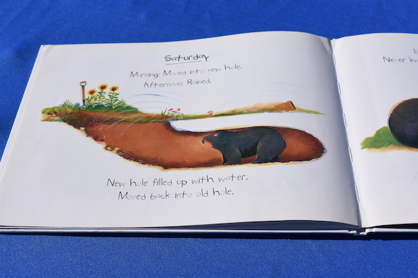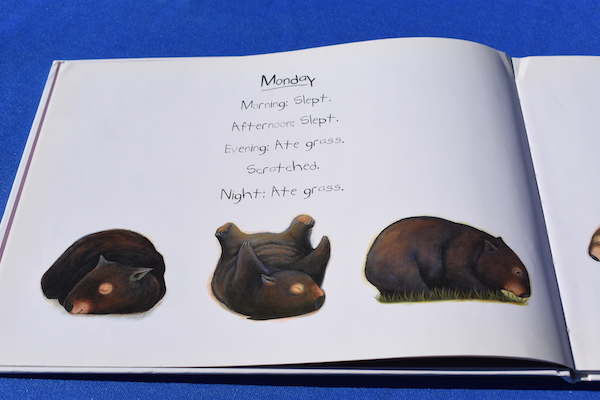 This cute picture book is written in the form of a diary written by a wombat.  The early entries are mostly eating and sleeping, typical for an animal.