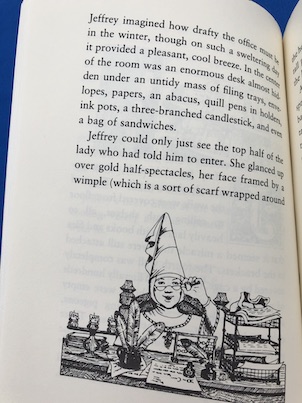 The two of them discuss what it’s like to be a knight. Sir Walter tells Jeffrey that it’s not all as glamorous as people think it is. Some parts are very difficult, and he has to travel a lot on his various assignments, keeping him away from his family for extended periods. Unlike real, historical knights, who would work for a lord, Sir Walter works for an agency in Axington called Free Lance Rescue Services Limited, which gives him his assignments. They send knights like Sir Walter to rescue damsels in distress or deal with dragons or ogres. Although it’s not easy work, Jeffrey likes the sound of it!