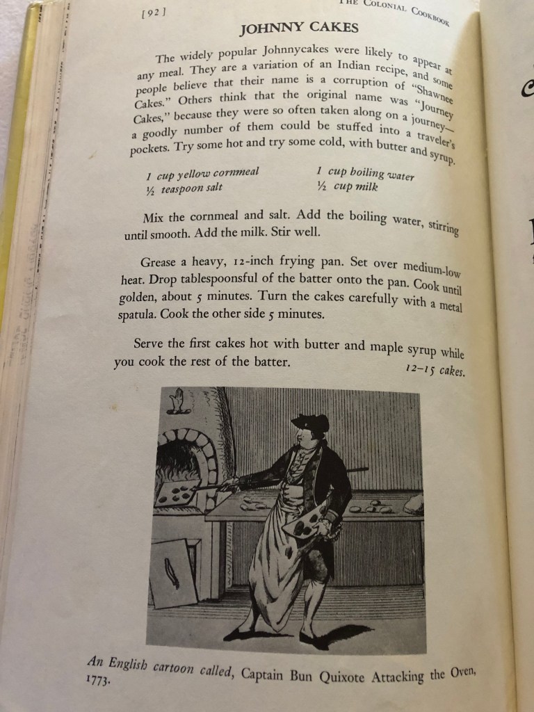 Johnny Cakes are a little like pancakes but made with cornmeal. The basic recipe is a little plain, but they can be served with butter and maple syrup.
