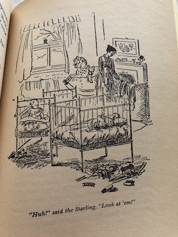 In some ways, the Mary Poppins in the original books isn’t quite as pleasant as Julie Andrews in the Disney movie version. The Mary Poppins in the book is vain and stuck up. She can be intimidating in her manner, refuses to answer questions, and even gets rude and snippy with the children. She was a little like that in the movie, but in the book, she’s even more so. After any strange or magical thing happens and the children want to talk about it, Mary Poppins gets angry at them and denies that any such thing happened at all. I found that rather annoying because it’s kind of like gaslighting, denying things happened when they really did happen. I think we’re meant to assume that’s because the adults aren’t allowed to find out that magical things have happened because they might put a stop to it or because Mary Poppins realizes that the children can only enjoy this kind of magic for a brief phase of their lives and that they’ll have to grow up in the more mundane world, just like the little twins can’t help but lose their ability to talk to animals. It’s a little sad, but I think it’s meant to provide some kind of rational explanation about how magic can exist in the world but yet go unnoticed by most people.