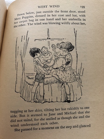 There is an episode in the book which has some uncomfortable racial portrayals. It takes place when Mary Poppins shows the children how a magical compass can take them to different places around the world, and they meet people who are basically caricatures of different racial groups. (This episode has resulted in the book being banned by some libraries. P. L. Travers received complaints about it in her lifetime, and she revised the scene in later printings of the book, which is why you’ll see books labeled as “Revised Edition.” I have more to say about this scene, but I’ll save it for my reaction.)