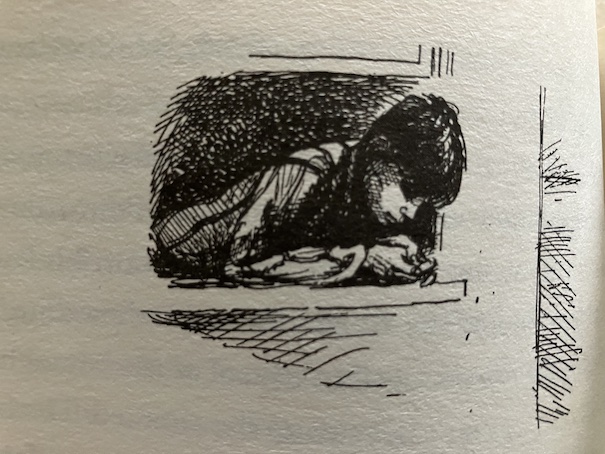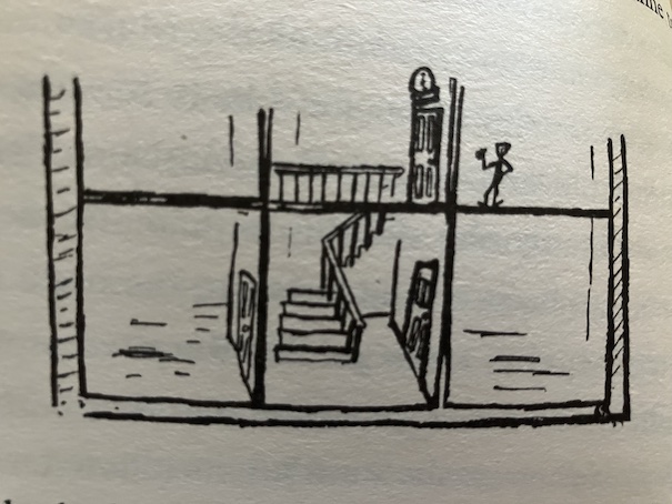 Marianne continues to feel the urge to draw in her spare time. She discovers that she’s unable to erase anything that she’s drawn, but she can continue to add to the picture. She adds more to the background so the house won’t seem to be in such an empty void, and on the opposite page in her drawing book, she draws the interior of the house, adding the stairs that the boy said were missing. This time, when Marianne dreams of the house, she finds herself in the interior, which is mostly empty because she hasn’t drawn furniture yet. She explores the house and finds the boy sitting on a window seat, looking outside, like he did before. The boy has noticed that the world outside the house has changed since Marianne drew hills and a tree. The two of them talk about their situation, trying to understand how they came to be in the house, and Marianne tells the boy that, now that there are stairs, he can go outside. The boy tells her that he still can’t because he can’t walk. He explains to Marianne about how he’s been ill for a long time, and he has special exercises he’s supposed to do to help his muscles, but it still isn’t definite whether he’ll be able to walk again or not. That’s when Marianne realizes that she’s talking to Mark, the same Mark that Miss Chesterfield told her about.