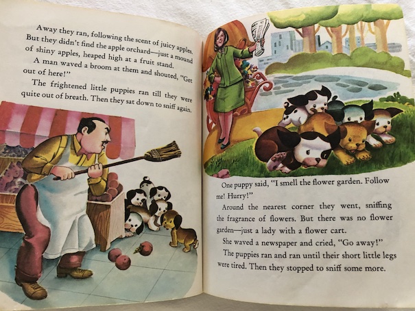 Like other Poky Little Puppy books, the story is cute. Nothing very stressful happens in the story, making it a good story for bedtime. Even though the puppies get lost temporarily, it isn’t for very long, and they get home in time for dinner, as they do in other Poky Little Puppy books.