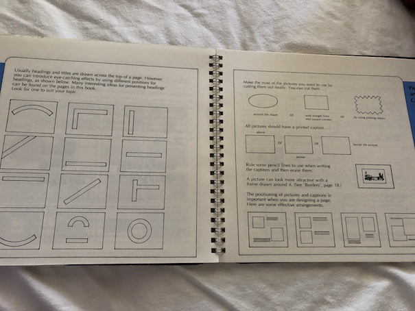 Then the book provides examples of how to design a page, showing different possible layouts for organizing page headings, text, and images. Although this book was planned around the idea of a printed poster, I think the layout suggestions and concepts could also be used for electronic media, such as web design or PowerPoint presentations.