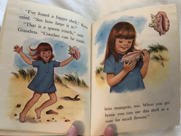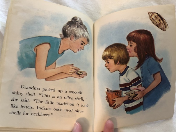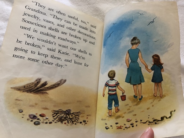 In the beginning of the book, there is a note to parents and teachers from the National College of Education in Evanston, Illinois about how the information in the book is educationally sound. I don’t have anything to criticize about the information in the book except one instance where the grandmother talks about “Indians” making necklaces from a certain type of shell. I’m pretty sure from context that they mean American Indians and not people from India, but I think that “American Indians” or “Native Americans” would be better terms to use for the sake of clarity.