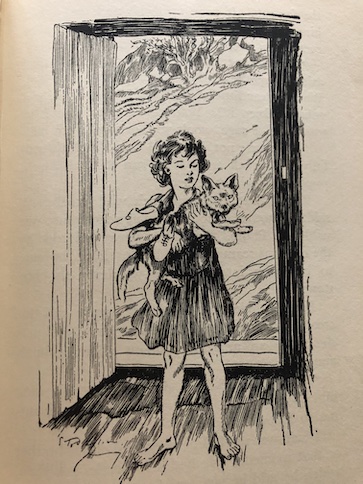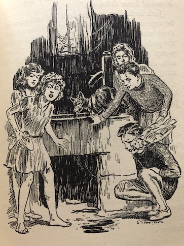 They make friends with a local girl named Tassie. They call Tassie a “wild girl” because she’s a gypsy, has a pet fox, and runs around in old, dirty clothes and without shoes (she carries shoes with her but doesn’t wear them) and seems uneducated. She doesn’t seem to know what an eagle is or what a bath is (although the children’s mother insists that she get one). (No, I don’t believe that she’s ignorant for being a gypsy. I think it’s both a stereotype and a plot device.) However, Tassie knows the area very well and helps the children find their way around. Tassie is also afraid of the castle. When the children ask her what stories people tell about the castle, she says that an evil man used to live there, and people would come to see him and never be seen again. Still, the children want to explore the castle.