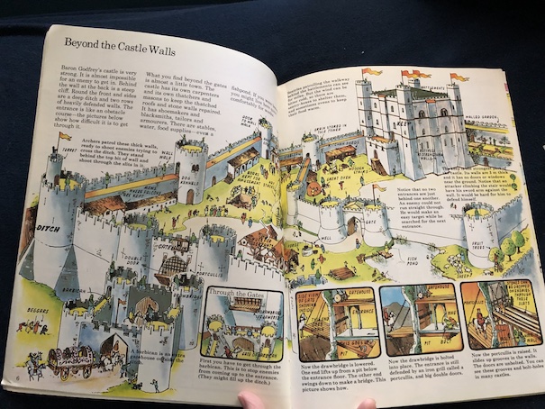 When readers arrive at the castle, the book explains different parts of the castle and how they were used for defense.