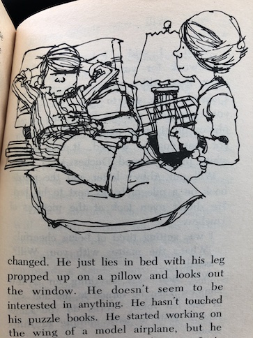 C = Chuck – His older sister Kate gets married in the first story in this this book, and during the field day story, the other kids say that he’s the best cyclist at school. Toward the end of this book, they mention that Chuck has just gotten a puppy named Duchess, which would actually make this book the first book in the series, before the one that’s often listed first.