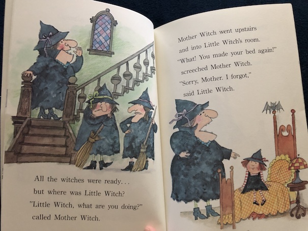 On Halloween night, all the witches in Little Witch’s family are busy getting ready for their big broomstick ride. However, when Mother Witch sees that Little Witch has cleaned her room and made her bed, something too nice for a witch to do, she punishes her by telling her that she will have to stay home.
