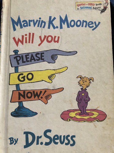 Marvin K. Mooney, Will You Please Go Now! by Dr. Seuss, 1972.