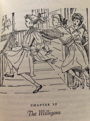 Then, an older woman who lives nearby moves away, and a new family moves into the house next door to the cottage. The Milligans aren’t a very good family. Mr. Milligan swears (the girls’ mother tells them not to listen and to keep the windows of the cottage closed while he’s chopping wood because of the things he says), and Mr. and Mrs. Milligan argue frequently. Laura, the daughter of the family, is the same age as the other girls, and she plays with them for a time, but the other girls stop playing with her because she’s mean to them. She teases them meanly, tries to boss them around, and eventually, steals from them. The stealing ends their friendship. Laura lies to her mother about what happened, blaming the other girls for slapping her and her baby brother and throwing them bodily out of the cottage. Mrs. Milligan comes to the cottage to lecture the girls about their behavior and refuses to believe them when they tell her the truth about Laura. To get revenge on the girls, Laura kills a plant in the girls’ cottage garden. The girls hadn’t purposely planted the plant, and they had been looking forward to seeing what it was as it grew.