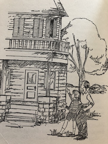 The story begins with both sets of Bobbsey Twins – the older set, Nan and Bert, and the younger set, Freddie and Flossie – disassembling their old tree house because they’re planning to build a new one. Six-year-old Flossie mentions that a spooky old house near their school is also going to be torn down, and Freddie says that another kid at school claims that house is haunted. The children’s father says that they must be talking about the old Marden house. It used to a farmhouse, but the town has grown around it. Mr. Marden was a wealthy man who had once been ambassador to Great Britain, and he build the large house when he retired. Since then, the place has become disused and badly run-down, which is why the kids think it’s spooky and why it’s going to be torn down.