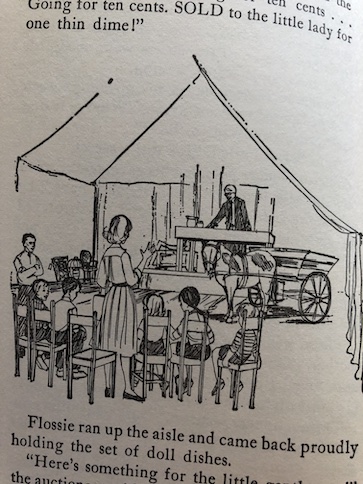 The auction is fun. The children each have a little money to buy something small for themselves, just for the experience of bidding on something at an auction. They all find something to buy, and some of the things they find are funny and eclectic. The mystery object that their mother is there to buy is a pony and cart. A neighbor of the aunt and uncle had a pony and cart that his grandchildren used, but they’ve moved away, and the Bobbseys have decided to buy it for their children. The twins’ aunt and uncle are willing to keep them at their farm because they can’t have a pony in the city, and their cousin can use them when the twins aren’t there. The children love the pony, and they have fun with him and the cart with some other kids. However, when they return to the farm after they auction, they discover that the family’s prize bull has been stolen!