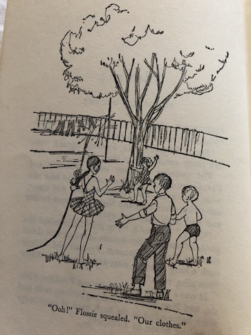 I was a little surprised that they left in the part from the original story where the kids put on their own circus, and they have an act they call the “Sacred Calf of India.” In the revised version, Nan wears an improvised sari for this act, and they teach the calf to do a trick. Animals doing cute little tricks are just fine, but adding in the exoticism seems in poor taste. I suppose that they left this part in the revised version because it’s not trying to be insulting to people from India, more that the kids are trying to play on the concept of circus acts and snake charmers, but it is another example of something that you find sometimes in vintage books but wouldn’t be likely to find in modern ones.
