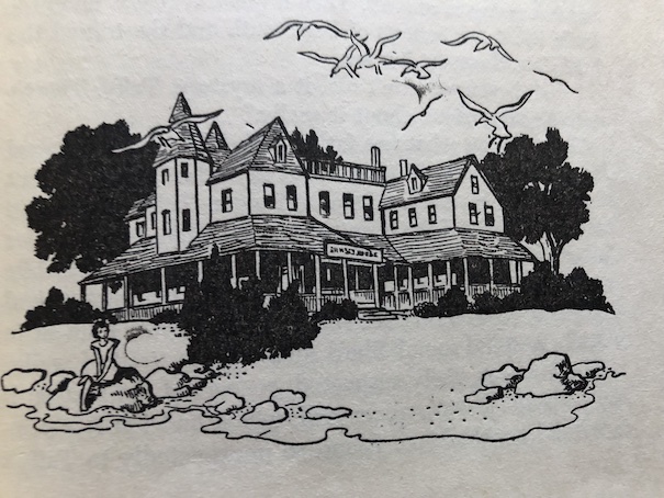 When Taffy sees Sunset House, she thinks it’s charming. The hotel is a large, old house with turrets, cupolas, and a widow’s walk. Mackinac Island in general seems charming. Cars are not allowed on the island, so people get around with horses, carriages, and bicycles. Taffy’s mother talks about wanting to “wake this place up”, but Taffy thinks that the calm, sleepy atmosphere is right for the house and doesn’t want to disturb it. Since Taffy has moved a great deal with her parents because of her dad’s job, she has lived in many hotels and apartments, and she finds the old-fashioned and comfortable furniture at Sunset House to be homey. Taffy thinks that the home-like atmosphere of Sunset House is a nice change and that she will like it there. The room she shares with her mother is beautiful, also filled with old-fashioned furniture and a charming alcove with a lovely view.