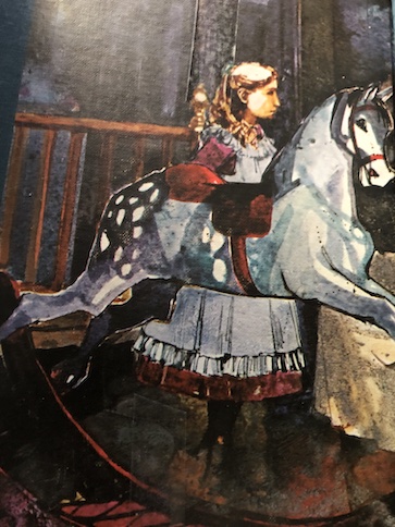 Alice shows Lucy her toys and games, which are all familiar to Lucy, looking like the ones she always played with at Aunt Olive’s house. However, Alice is spoiled and cheats at games to win. The two of them argue about it, and then Alice sends Lucy to the attic because her tutor is coming, and Alice doesn’t want her to see Lucy. Lucy finds herself in the attic in her aunt and uncle’s house in modern times, unsure of what just happened.
