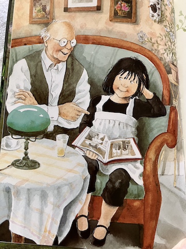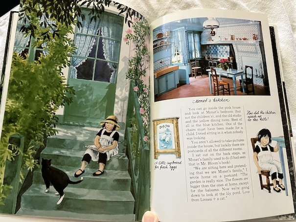For the last day of their trip, Linnea and Mr. Bloom decide that they want to return to Giverny. When they make their second visit, a man recognizes them as return visitors, and he turns out to be a member of Monet’s family, his step-great-grandson, Jean-Marie Toulgouat. He lives nearby, and he is also an artist, although his art style is very different from Monet’s. He talks to them about Monet’s life and family, and it also turns out that his wife was the author of the book about Monet that inspired Linnea and Mr. Bloom to take this journey!