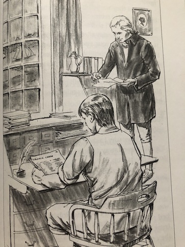 William begins to feel a little better when his father tells him that he’s arranged for them to work together from the family’s country mansion. His father says that captains of the ships he owns will stop at Horn’s Hook on their way to New York Harbor to report to him, and William will help him to prepare the cargo lists and timetables for the ships. Their temporary exile from New York hasn’t put a stop to their business or William’s education in that business; they’re just going to be doing things a little differently until the crisis is over.
