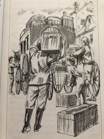 While the family is traveling to their new country house, Mr. Gracie tells them about the history of the place. There used to be another house on that land, but it was destroyed during the American Revolution (an event still in relatively recent memory at the time this story takes place) as the British and the Patriots struggled to control it because that location is a strategic spot on the Harlem River. Mr. Gracie says that their new house is built over the basement of the old house, and that’s important because he’s aware that the former owners had a secret tunnel that led out of their basement in case they needed to use it as an escape route during the war. He told the builders to look out for it while they were building the new house, but if any of them ever figured out where it is, they never admitted it. The Gracie children are excited about the idea of their new house having a secret tunnel, and they’re eager to find it!