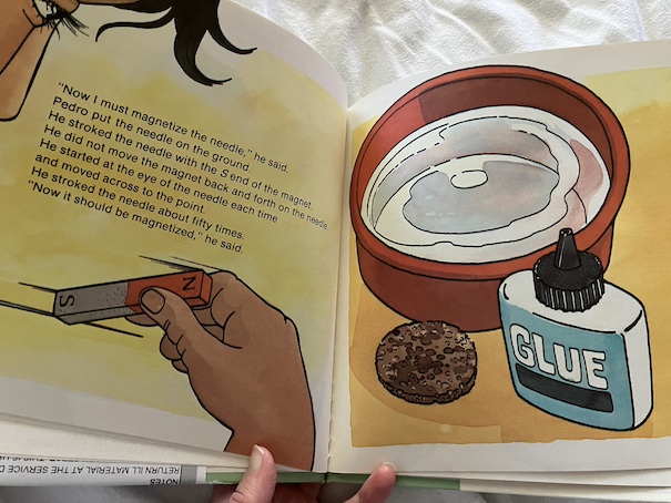 It’s a fun picture book mystery, but it’s also educational. The books in this series use scientific concepts to explain the mysteries or to help solve problems. This book explains how a compass works, and to find Adam, the kids have to create a compass of their own.