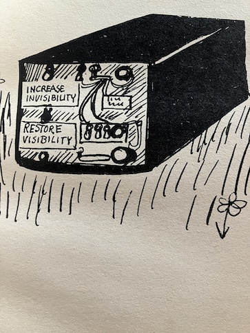 When the organization goes to confront Brains about what just happened, they find him with his strange box. The box appears empty on the inside, but they hear dog sounds from it. Brains operates the controls and opens the box again, and Dennis comes out! Brains claims that he invented the invisibility box by accident while he was trying to develop a treatment for getting rid of Dennis’s fleas and ticks using light rays. Brains says that there is a side effect where Dennis sometimes turns invisible at random times without Brains intentionally turning him invisible but that he’s working on the problem.