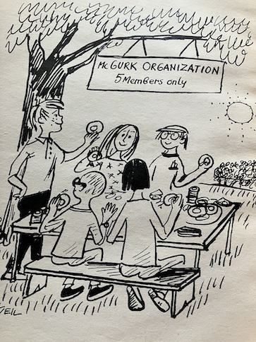 The members of the McGurk Organization are having their annual picnic in McGurk’s backyard when, suddenly, a doughnut leaps off the table and begins traveling through the bushes and grass. None of them can understand what’s happening because they can’t see anything that would cause the doughnut to move like that.