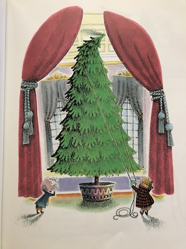 Mr. Willowby lives in a large house, and he orders a large Christmas tree by special delivery. It’s large and wonderful, but it’s just slightly too tall for the room where Mr. Willowby wants to put it.