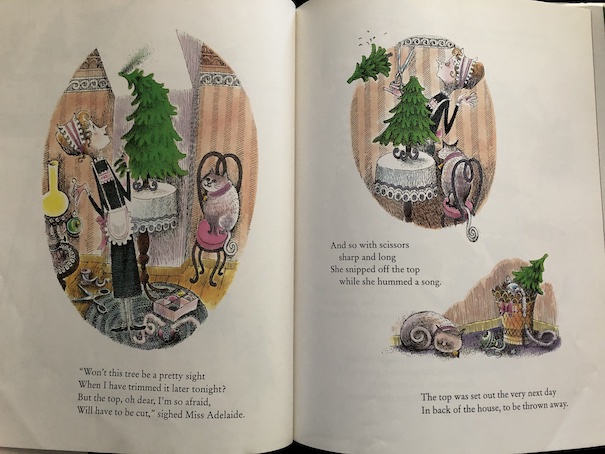 I remember this book from when I was a kid! I remember liking how several people and animals get Christmas trees out of just the top of one large Christmas tree. It’s a fun story about how one person’s trash is someone else’s treasure and nothing needs to go to waste. Mr. Willowby’s Christmas tree ends up helping everyone. In the end, everyone is happy because they all get a nice Christmas tree.