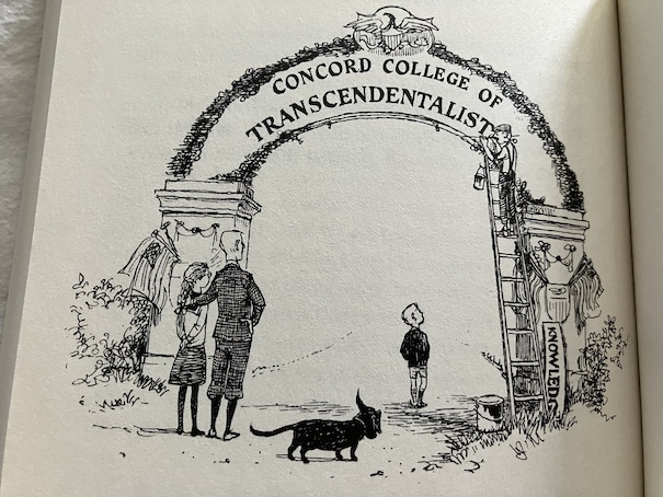 When she shows the children pictures of Ned and Nora in the family’s album, they also see a picture of a young man in a turban and ask about him. Aunt Lily says that the man is Prince Krishna, son of the Maharajah of Mandracore. Their Uncle Freddy has written books about Emerson and Thoreau and was once considered an expert on the Transcendentalists. People who were interested in Transcendentalism, like Prince Krishna, used to come and study with him. Aunt Lily wasn’t really interested in Transcendentalism, but she explains, “I think he said that the Transcendentalists believed that men’s minds were very wonderful, and that they could know all kinds of important things without being taught about them through their eyes and ears –because they were part of something called an Over-Soul.” Eddy approves of this concept because it sounds like it’s about learning without school, and he approves of anything that involves no school.