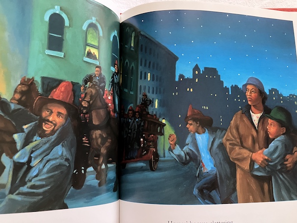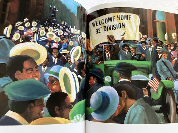 One hat that still has a slight smokey smell reminds Aunt Flossie of a big fire she witnessed in Baltimore. Another hat, one with a red feather, reminds Aunt Flossie of the parade she saw at the end of the Great War (what WWI was called before WWII).