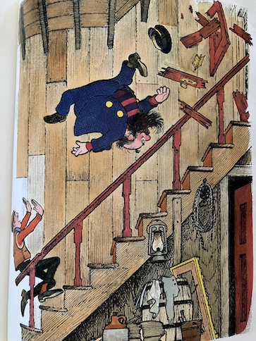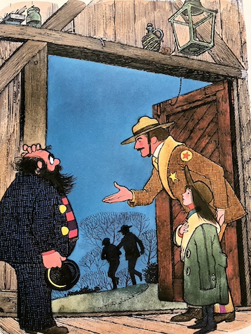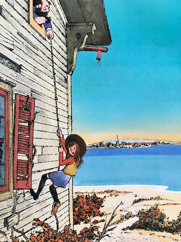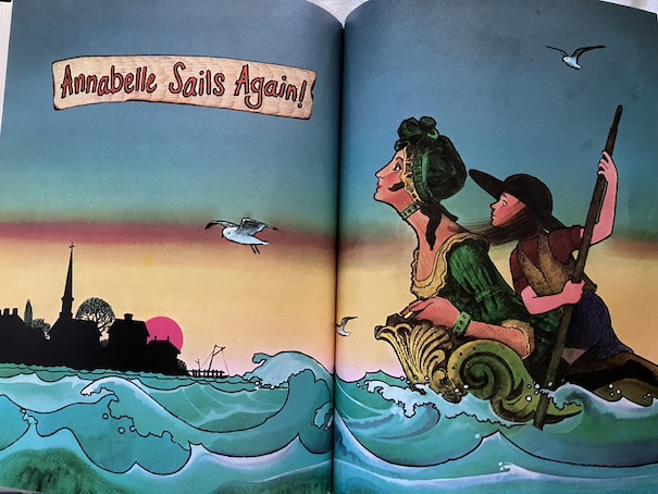 The story is more adventure than mystery. The thieves are strangers, not anybody from the town, so there’s no evaluation of different suspects, and Mr. Whiskers has a pretty good idea where the thieves are hiding, so there isn’t much searching for them. It’s more about how Maggie and Mr. Whiskers escape from the thieves and alert the authorities. It’s a nice story, but I just think that the “mystery” could use a little more mystery. The best part is when Maggie uses the old figurehead, Annabelle, as an improved raft to reach the authorities.