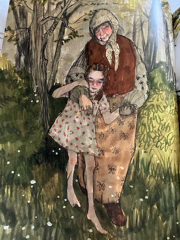 Patricia Polacco’s real-life grandmother also appears in the story, the same grandmother who appears in another of Polacco’s books, Thunder Cake. Her grandfather wasn’t present in that story, but he is in this one. Both of the grandparents are mentioned as dying before the story ends.