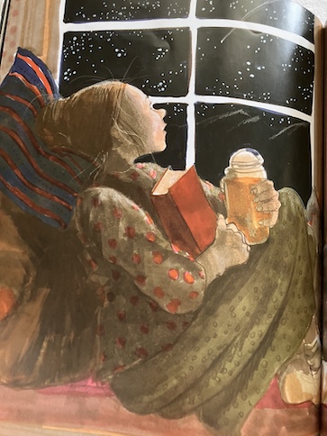 I enjoyed seeing this part of the author’s childhood, although I found the part with the school bullies stressful. I do think it was important to include that part, though, because that can be part of the experience of children who struggle in school. Although Eric is an obvious bully in the story, the other kids also make Trisha miserable with their teasing and insults. It occurred to me that they may not all think of themselves as bullies, but at the same time, a person doesn’t have to think of themselves a bully in order to be one. Bullying is a behavior, and it exists independently of self-identity. Part of me wondered, if the girl and the teacher in the story are both real, were the bullies also real, and if so, did any of them ever read this story and recognize themselves? Maybe some did, and maybe they didn’t. Maybe not all of them would even care, if they had.