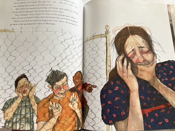 Trisha continues to struggle in school, even after the family moves from Michigan to California. She is in third grade at that point, and other children insult her and tease her when she struggles, and Trisha feels dumber than ever. She spends more time drawing and daydreaming, and she starts hating school, sometimes pretending that she’s sick so she won’t have to go.