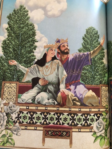 The artwork in the book is beautiful. The artist tried to make the art style as authentically Persian as possible, using models for the characters who were ethnically Persian (Iranian). The artist used a combination of water-based markers, colored pencils, and ink, and pictures are lively and full of color.