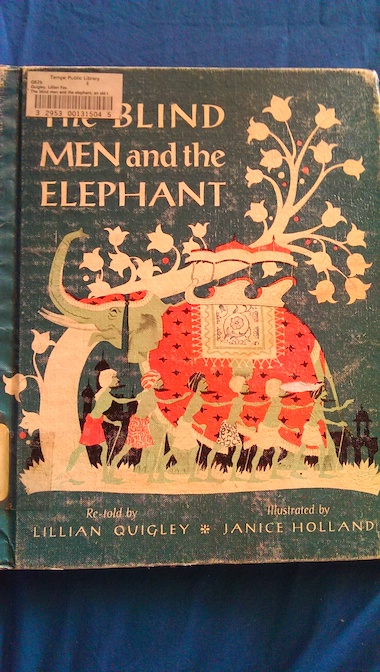 A group of blind men set out to learn more about elephants, which they have never actually seen, but run into difficulties when they each develop different impressions of a very large animal.