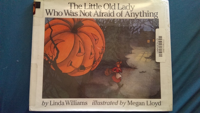 This is a cute picture book based on word and sound repetition. A brave lady ventures out into the woods one day, and as she makes her way home again when it gets dark, she begins to encounter some strange things. By Linda Williams.
