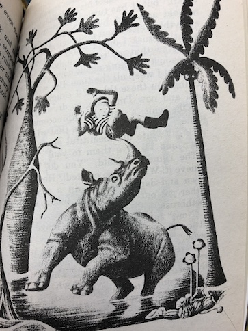 My copy of the book is one of the later editions that had some of the names and language changed to remove racially-problematic aspects of the story. In the original version of the book, the sinister handyman was a black man called Jo-Jo, and his race was unduly emphasized. I prefer the version where he’s just a weird guy named Joe.