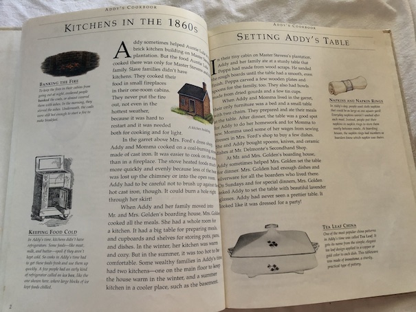 The book ends with a section of historical information that explains how new settlers moving westward turned frontier areas like the area where Kirsten’s family lived into more settled towns. The farms where people lived became less isolated, and railroads connected cities and rural areas across the country. The first transcontinental railroad in the United States was completed by the time Kirsten would have turned 24 years old, changing the ways that people and goods traveled.