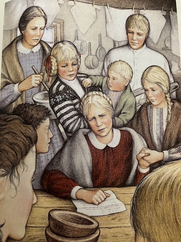 Kirsten’s aunt takes in Kirsten, her mother, and her siblings. It’s a little crowded in her house, but at least, they have a place to go. Everyone is understandably upset, although they are not too hard on Kirsten for causing the disaster. However, her mother says that they had been hoping that maybe they could buy a little land with the money Kirsten’s father is making at the logging camp, but she doesn’t see how they can now. They’re going to have to build a new cabin and replace some of essentials that they lost in the fire.