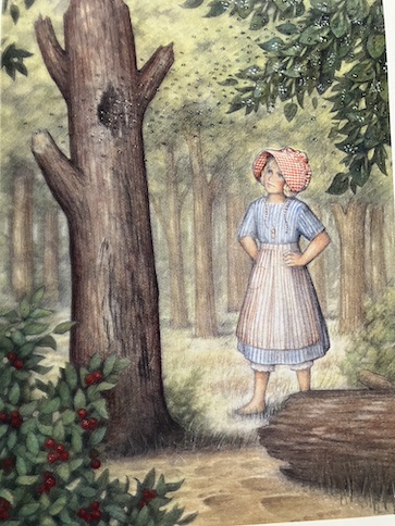 It’s winter, and Kirsten’s brother, Lars, is going to set animal traps in the woods with his friend, John Stewart, who lives nearby. Kirsten is friends with John’s sister, Mary. Trapping animals for their pelts is one of the ways that the boys make some extra money. The local men are all away, working at a logging camp for the winter. Kirsten isn’t really interested in trapping animals so much as she just wants to get out of her family’s little cabin because she’s been cooped up due to the winter weather, so she persuades the boys to let her come along on their trapping expedition.