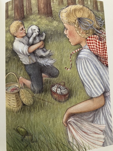 It also helps that the situation works out for the best in the end. When they hear that the Stewarts are moving, they do want the Stewarts’ house, but they just don’t think they will be able to afford it. What changes for the Larsons is that they receive an unusual sort of inheritance from Old Jack. When Kirsten and Lars are lost in the woods and seek shelter from Old Jack, they discover that Old Jack has died. There doesn’t appear to be any foul play. Old Jack was an elderly man, and he seems to have died from natural causes in his house. It’s a grim discovery, but while Kirsten and Lars shelter in his house with the body overnight, they also realize that Old Jack has a hoard of fine animal pelts. Since Old Jack has no family and no one to inherit his property, there is no dispute that the Larsons can claim his pelts because they found his body and plan to arrange for his burial. With the money that Old Jack’s pelts bring, they are able to afford the Stewarts’ house, which is much better than their old cabin. The Stewarts also leave them some furniture and household supplies.