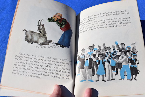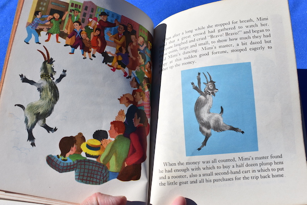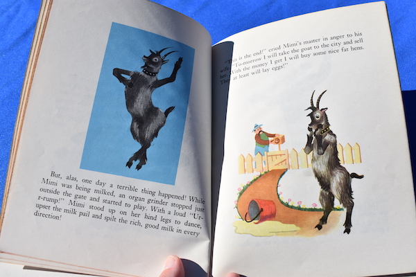 Mimi is a good little goat who lives with a poor farmer and his wife.  They like her and take good care of her, and in return, she provides them with milk that they sell to help make their living.  However, things change for Mimi when she happens to see a circus parade with a dancing dog.  From that moment on, all Mimi wants to do is to dance!