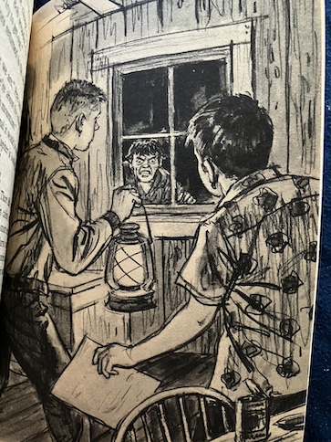 Tolie is a little later in leaving with Handie and Rainbow than they originally agreed, and Handie talks to him about the importance of punctuality, telling him a little story about some boys trying for a job and how the one who planned ahead against accidents making him late was the one who got the job. They discuss the story a little, and then, Handie asks Tolie some questions about Southerton and what he knows about the Three Pines farm. Tolie says that Southerton is a small town but pretty nice. He is familiar with the Three Pines farm because boys in the area like to go fishing in a stream nearby. The Three Pines farm used to be very nice, but it has become run down. It was originally established by a man name Captain Stanfield, an early settler in the area. There really are three pine trees on the farm. Tolie says that Captain Stanfield deliberately left the three pine trees there when he cleared the land for planting, and there’s supposed to be a story about why he did that, but Tolie doesn’t know what the full story is.