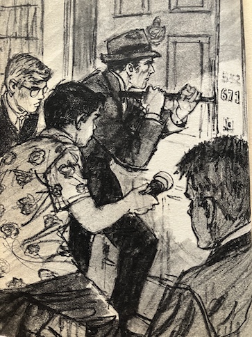 When Rainbow next speaks to Handie, Handie tells him that everyone’s bags and trunks will have to be searched because some things have been stolen. Handie’s pretty sure that he knows who will be most reluctant to have his bags searched, but he doesn’t say so aloud. (I think we all know at this point who the thief probably is.) While the search is being conducted, Rainbow quietly tells Trigget about Burkill’s hidden carpet bag. Trigget tells him not to say anything to anyone else yet.