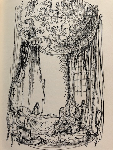 Soon after the children’s father gives away Peggy, he falls seriously ill, apparently from something he caught from the family he gave Peggy to. The children worry about what his illness will mean for their family, especially if he dies. Their first thoughts seem fairly petty. They first think that maybe this wouldn’t have happened if he hadn’t decided to give away Peggy. Then, they realize that, with their father ill, they won’t be able to travel to Italy this summer, as the family planned. Then, they think that, if their father dies, they will all have to wear gloomy black, and either Edwin will become head of the family at age 16 or that their uncle will look after the family. Their uncle is a more dour man than their father, so that’s also a gloomy prospect.