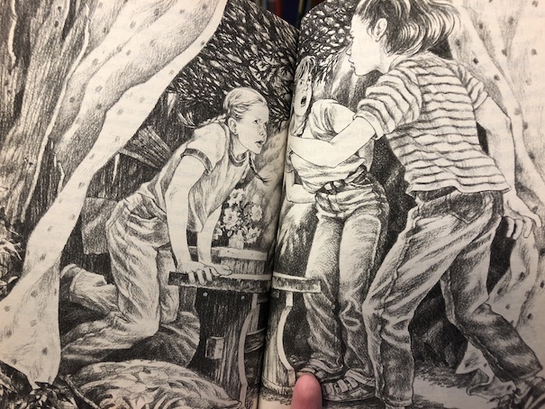 One thing I did enjoy was the description of the game of Hare and Hounds (also called Paper Chase) that came right before the carriage scene. I’d never heard of the game before, but apparently, it’s been a popular game in British schools for centuries. Probably, the reason I’ve never seen it played is because the playgrounds and yards of the schools I attended wouldn’t have been large enough to make a really good game. One person plays the role of the “hare” and is given a head start, leaving a trail of bits of paper behind him as he goes. The other players are the “hounds”, and they try to find the hare by following the trail of paper bits, like they were hounds following a scent. The object of the game is for them to catch the hare before he reaches a designated finishing point. At a school where you can see pretty much the entire playground and everyone on it at once, there wouldn’t be any point in following a trail or any real challenge to the game, but it sounds like an interesting game to play if you can find a large enough space for it.