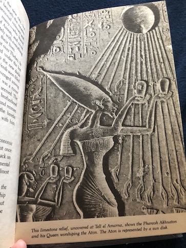 Although most Ancient Egyptians were polytheistic, like other ancient civilizations, there was one pharaoh who believed in only a single, all-powerful god. This pharaoh was Akhnaton, the father of Tutankhamen. (The book refers to Tutankhamen as a younger half brother of Akhnaton, but later sources say that he was Akhnaton’s son, although there is still some dispute about that. Either way, the two were related, and Tutankhamen was Akhnaton’s successor.) Akhnaton worshipped the sun, calling the sun god Aton. Part of the reason for this conversion to the worship of a single sun god instead of the many gods of the Ancient Egyptian pantheon may have been due to a power struggle between the pharaoh and the High Priest of Amon. However, Akhnaton seemed to genuinely believe in the Aton and was devoted to it, establishing a new capital city and outlawing worship of other gods. Unfortunately, his health was frail, and worship of the Aton didn’t extend beyond his death around the age of 42, with Egyptians returning to worship their old gods. Tutankhamen, who had been born Tutankhaton, changed his name and moved the capital away from Akhnaton’s city. Tutankhamen’s reign was short. He died in his late teens. (The cause of his death has never been precisely determined, although it seems likely that it was a combination of ill health, possibly a congenital condition due to inbreeding in the royal family, malaria, and a physical injury.) Tutankhamen’s main source of fame is his tomb, found largely intact in November, 1922.