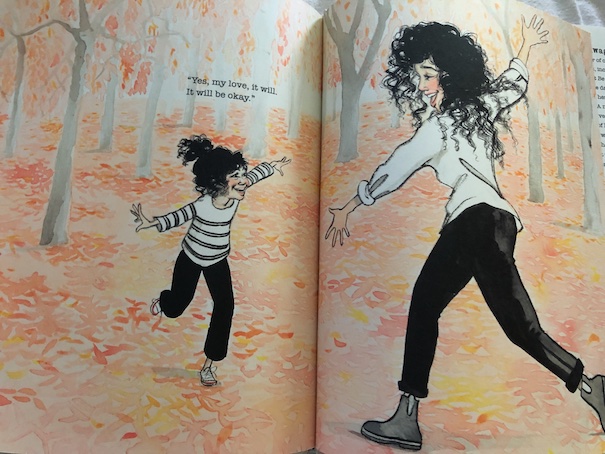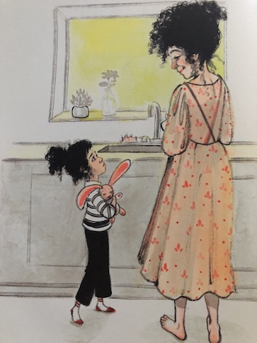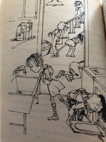 I love the way that the pictures in the book alternate between Marianne’s drawings and the children’s “real” experiences. First, we get to see what Marianne draws, and then, we get to see how her drawing comes to life in the children’s dreams. Marianne’s drawings are child-like, with crooked houses, misplaced windows, and stick figures. The dream drawings are as misshapen as Marianne’s drawings, but at the same time, they are more three-dimensional, as the children perceive them when they’re inside them in their dreams.